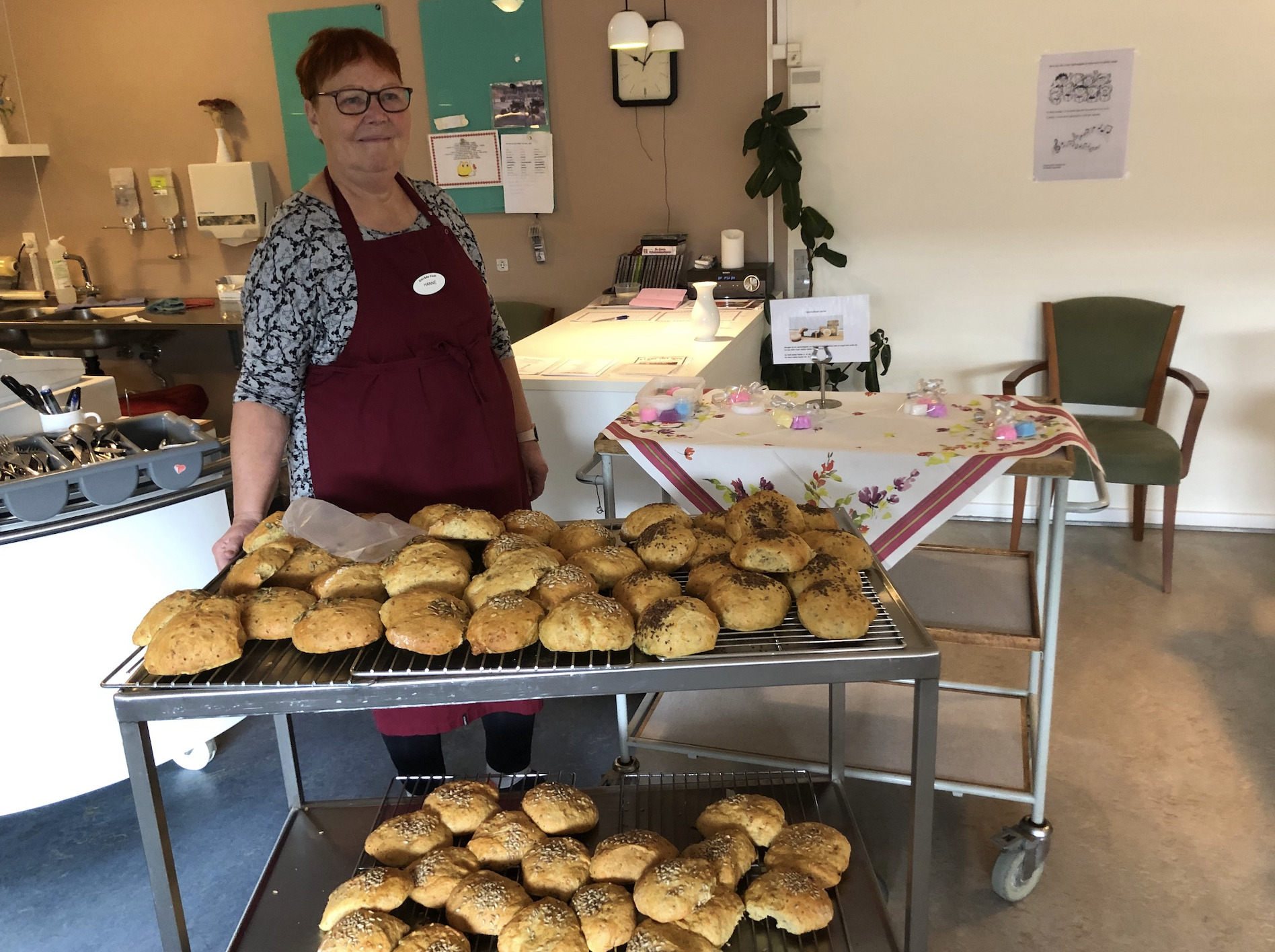 Da Vores Sabro var på besøg, var der nybagte, kæmpestore, lækre velduftende boller. Hanne Larsen, der er frivillig i caféen, fik let overtalt undertegnet til at købe 5 stk. Tirsdagsboller for den favorable pris af 20. kr.
