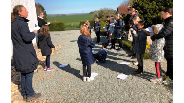 Fra 3.A deltog 10 drenge og piger. Senere fulgte hold fra 3.B og 3.C. Børnene bliver afhentet på skolen af sogne- og kirkemedarbejder Susanne Juul Vestergaard og en frivillig.
