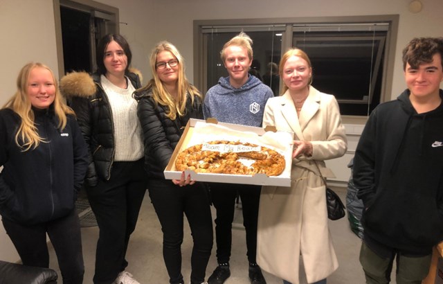 Forleden fik de unge en påskønnelse fra det lokalbaserede cykelhold Team My Heart, en 1.000-kroners kage. Holdet består af en folk aldrende seniorer fra Aarhus og omegn med forskellige hjertelidelser. De cykler sammen hver onsdag og holder pause hos Harlev-bageren, hvor de får et rundstykke og en kop kaffe.