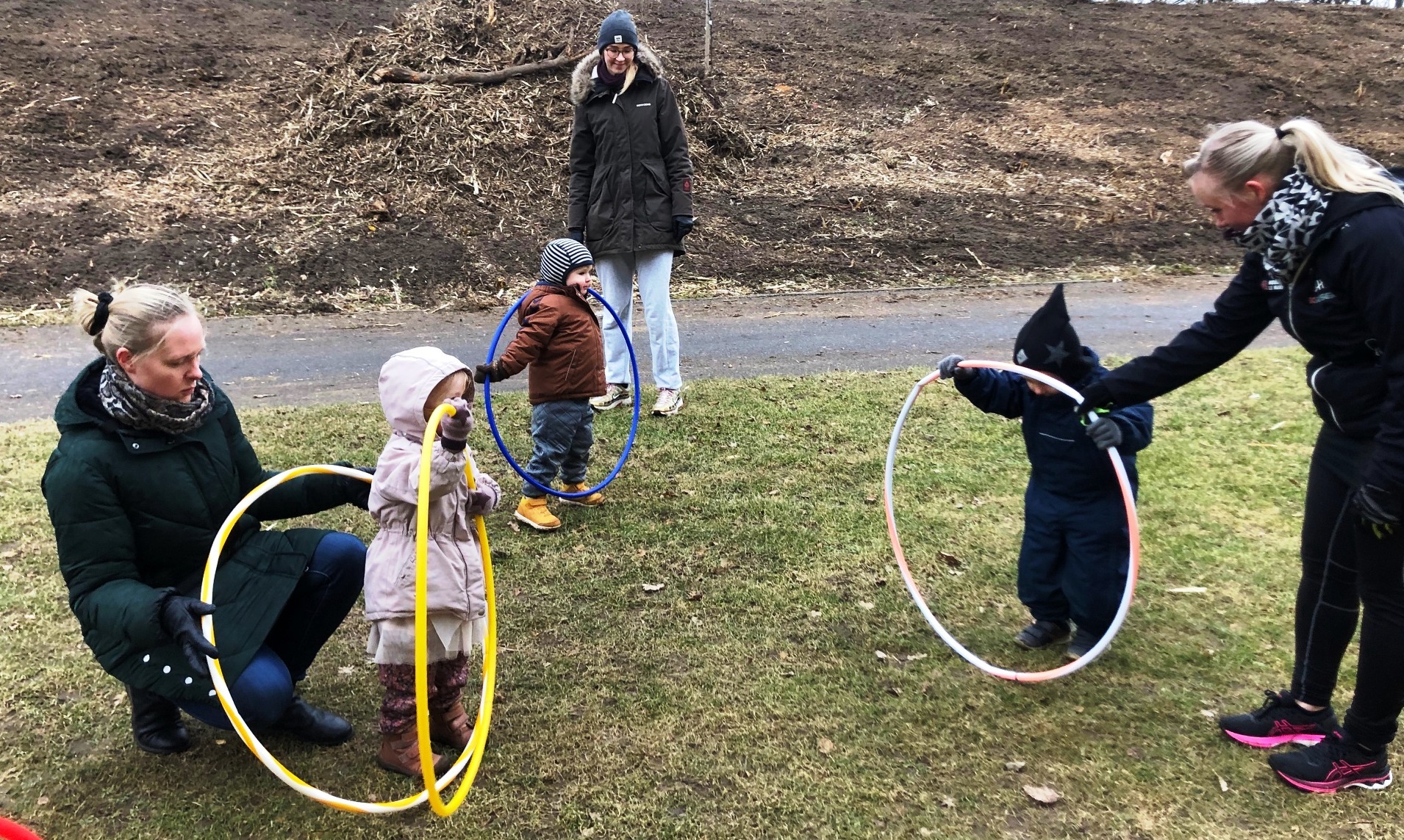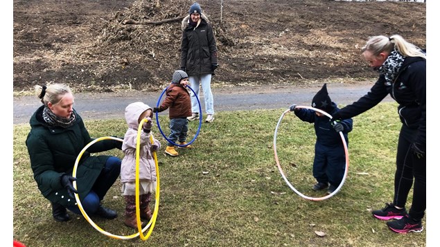 Men vejret var koldt og med støvregn og ikke indbydende til udendørs aktivitet onsdag, da Forældre/barn 2 år startede. Det var forventet, at det var forgæves at møde nogen til opstart på aktivitetet. Men på en grå, kold martsdag var der en solstrålehistorie. På det grønne areal bag den grønne sal, lød der glade barnestemmer.