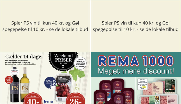 Spier PS vin til kun 40 kr. og Gøl spegepølse til 10 kr. - se de lokale tilbud